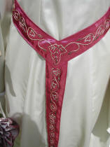 | Détails des broderies de l'encolure bateau fantaisie et de la ceinture 1 pan de cette robe elfique | ||