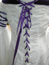 Détail du laçage écarté en ruban de satin violet |
